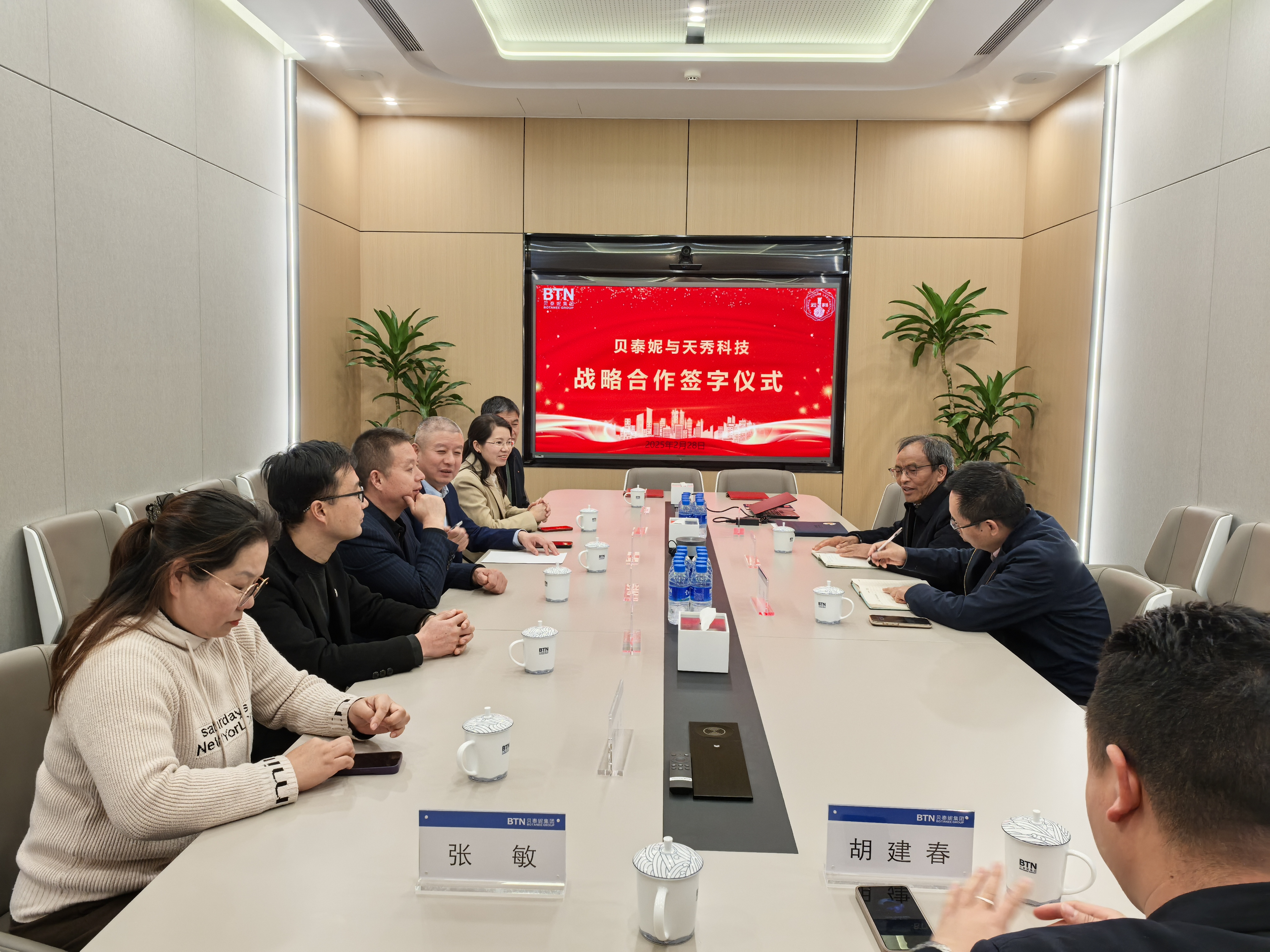 金蛇祥瑞,七星连珠。2025年2月28日下午,在昆明高新区贝泰妮集团云南特色植物提取试验室研发中心,云南天秀植物科技公司与云南贝泰妮生物科技集团股份有限公司举行了战略合作签字仪式。著名医药健康产品研发专家、云药百亿产品的研发者、缔造者,贝泰妮集团云南特色植物提取实验室首席科学家杨兆祥院长,贝泰妮集团研发专家张伟、闫丽娟,云南天秀植物公司梁国平、梁国瑞、刘献红、胡建春、金瑞、徐发群、雷喜玲、张敏参加了此次签约仪式。