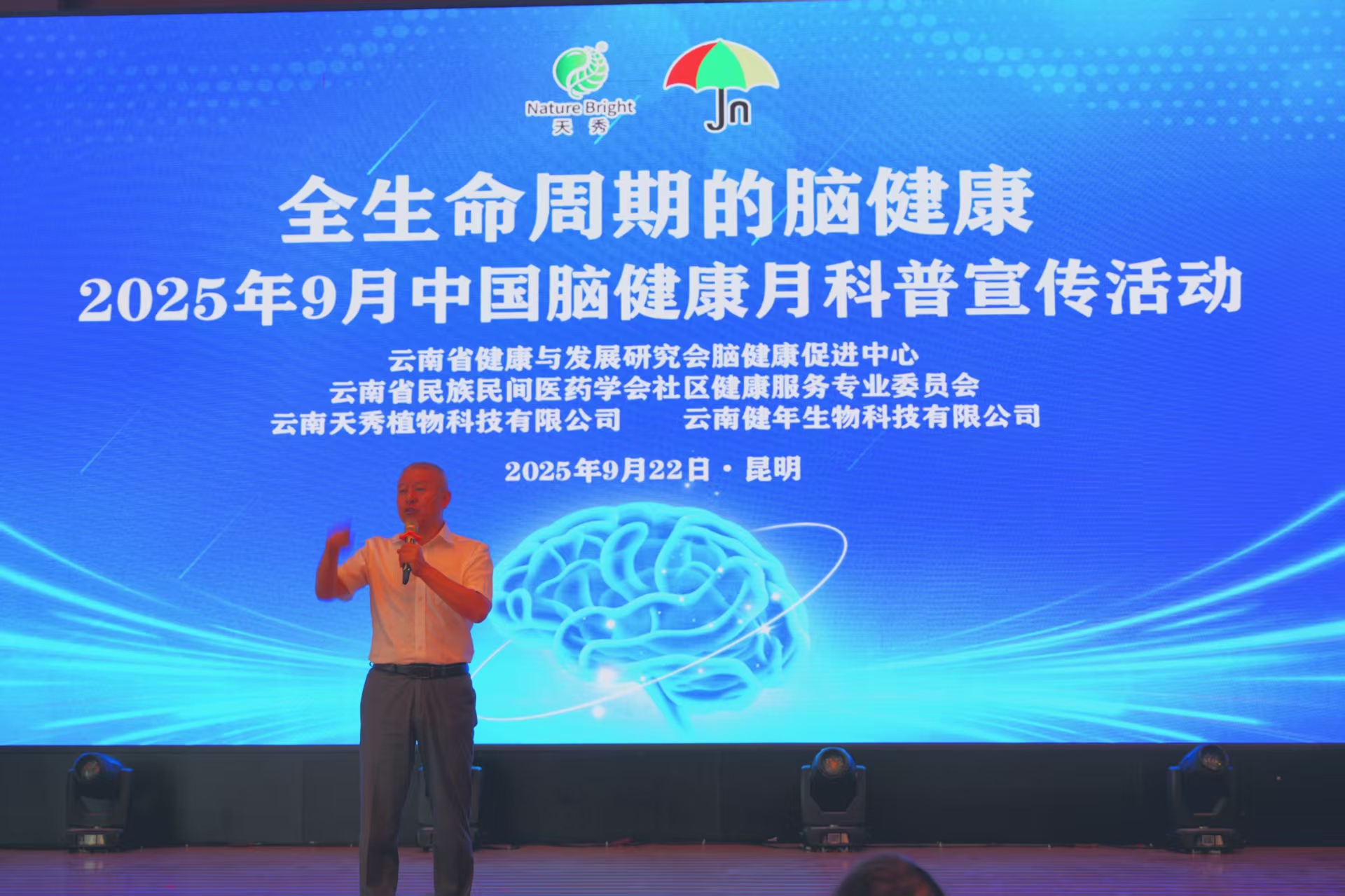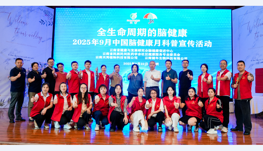 为提升公众对脑健康状况的关注度,积极推进脑健康管理服务,云南天秀植物科技公司·云南健年生物科技公司·云南龙草生物科技有限公司联合云南省健康与发展研究会脑健康促进中心、云南省民族民间医药学会社区健康服务专业委员会共同组织开展全生命周期的脑健康·2025年9月中国脑健康科普宣传活动,让更多的人关注脑健康,传递“早防早治,守护认知”的健康管理观念。