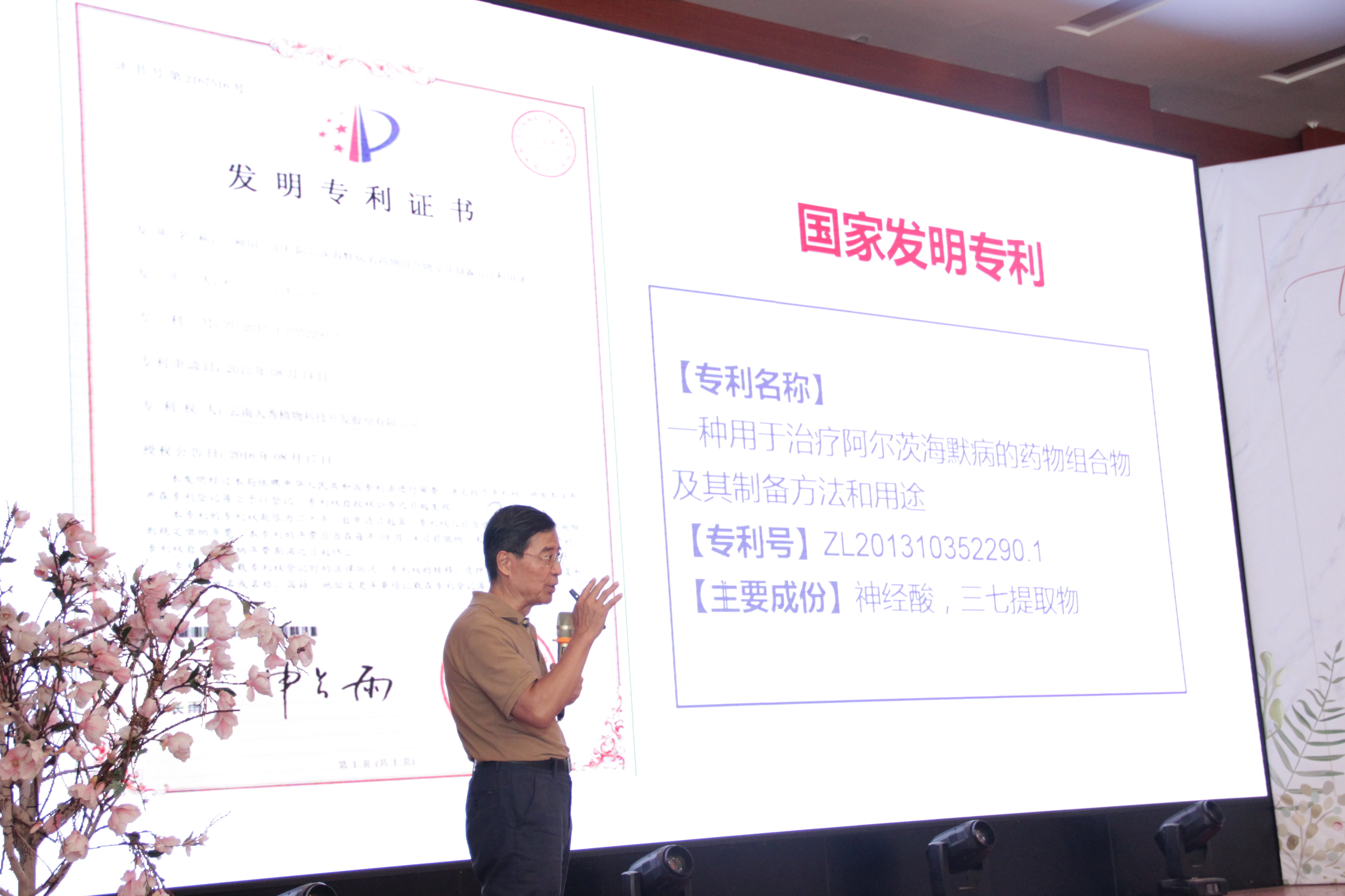 中国林业科学研究院博士生导师、国家濒危物种科学委员会委员、国家高原湿地研究中心首席科学家、西南林业大学原副院长、云南省林业科学院原院长、中国神经酸研发著名专家杨宇明教授,深情的回顾了他和科研团队多年来为云南生物多样性以及珍稀濒危物种蒜头果的保护及利用研究所走过的艰辛历程和所取得的丰硕成果。杨宇明教授讲解了七彩云南中药材资源基本情况,介绍了三七总皂苷和蒜头果神经酸对脑健康的作用及西南林业大学和云南天秀植物公司共同研发神经酸三七花叶片的情况,杨宇明教授指出:云南是植物王国、中药材王国,云南中药资源丰富多样,如三七、天麻、石斛、重楼、蒜头果、冬虫夏草、茯苓、黄精等。这些植物因其独特的药用价值而备受推崇,广泛应用于中医药治疗和保健养生。蒜头果是目前所知神经酸含量最高的物种,是大自然馈赠予云南生物健康产业的一个的宝贵资源,是将云南特有的珍稀保护物种的保育与高价值利用结合,打造绿色食品和推动生物大健康产业发展的典型代表。