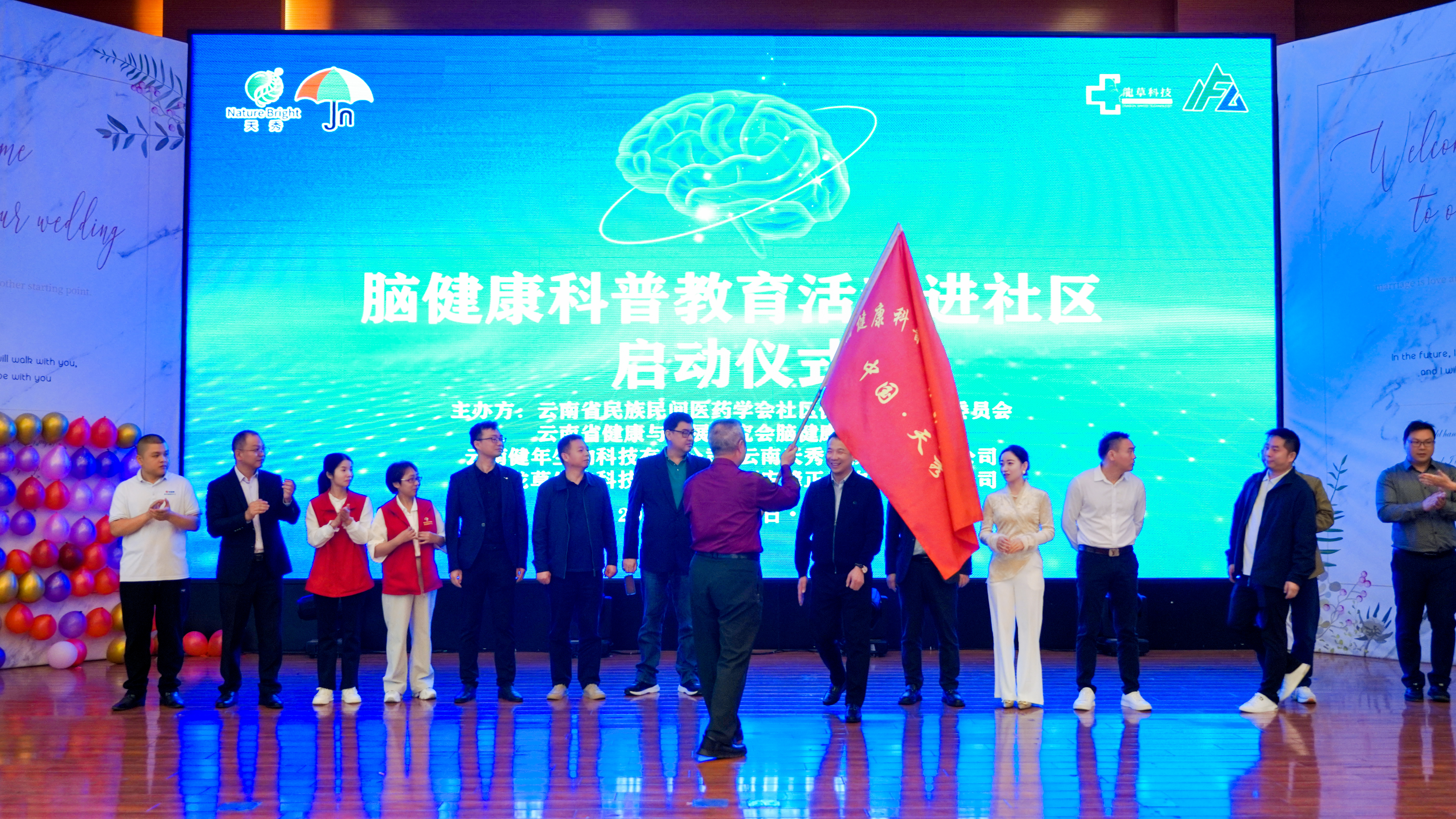 金秋送爽,丹桂飘香。2025年10月11日上午,由云南天秀植物科技有限公司、云南健年生物科技有限公司、云南龙草生物科技有限公司、西安峰正生物技术有限公司联合云南省健康与发展研究会脑健康促进中心、云南省民族民间医药学会社区健康服务专业委员会共同主办的 “脑健康科普宣传进社区行动” 在昆明隆重启动。文山军分区原政委刘志和,德宏军分区原司令员蒋健,李晓明、杨宇明、刘祥义、蔡朝霞等专家学者,赵峰正、房鹏珍、吴勤山、张斌、叶洪文、杨森、张永直、王伟以及各地合作伙伴300余人齐聚一堂,共启脑健康科普新篇章。